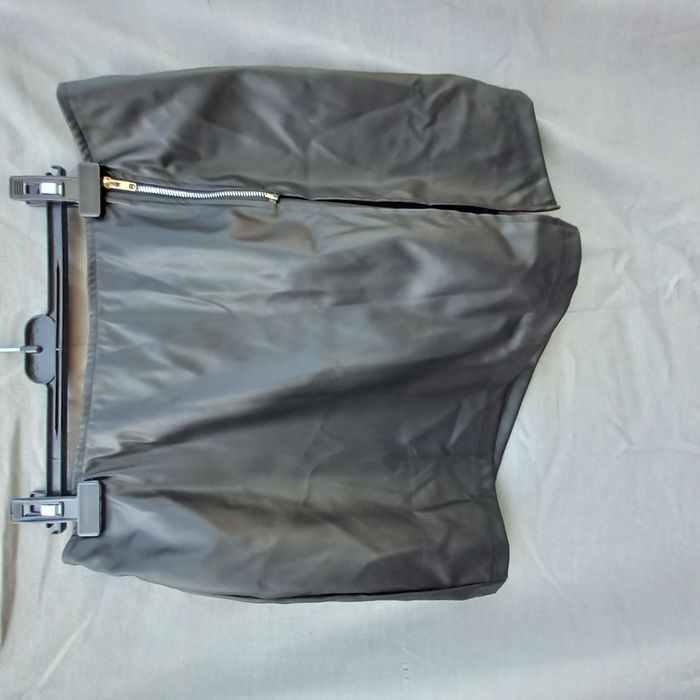 - jupe Short Shein, coloris noir, à enfiler, zip décoratif, élastique à la taille et au dos, jupette devant, composition 100% polyester revêtement 100% polyuréthane, largeur taille 41 cm, longueur 34 cm, taille 0XL