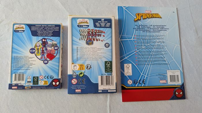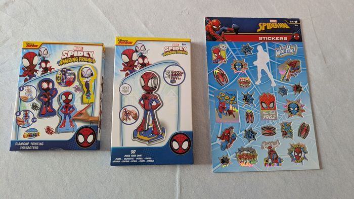 Bonjour, Vends lot créatif enfant spiderman composé d'un spiderman à construire en 3 D à partir de 6 ans NEUF , un ensemble de 3 personnages spiderman en diamond painting à partir de 3 ans NEUF et un bloc de 6 feuilles de stickers brillants spiderman, il en manque juste un , à partir de 3 ans .