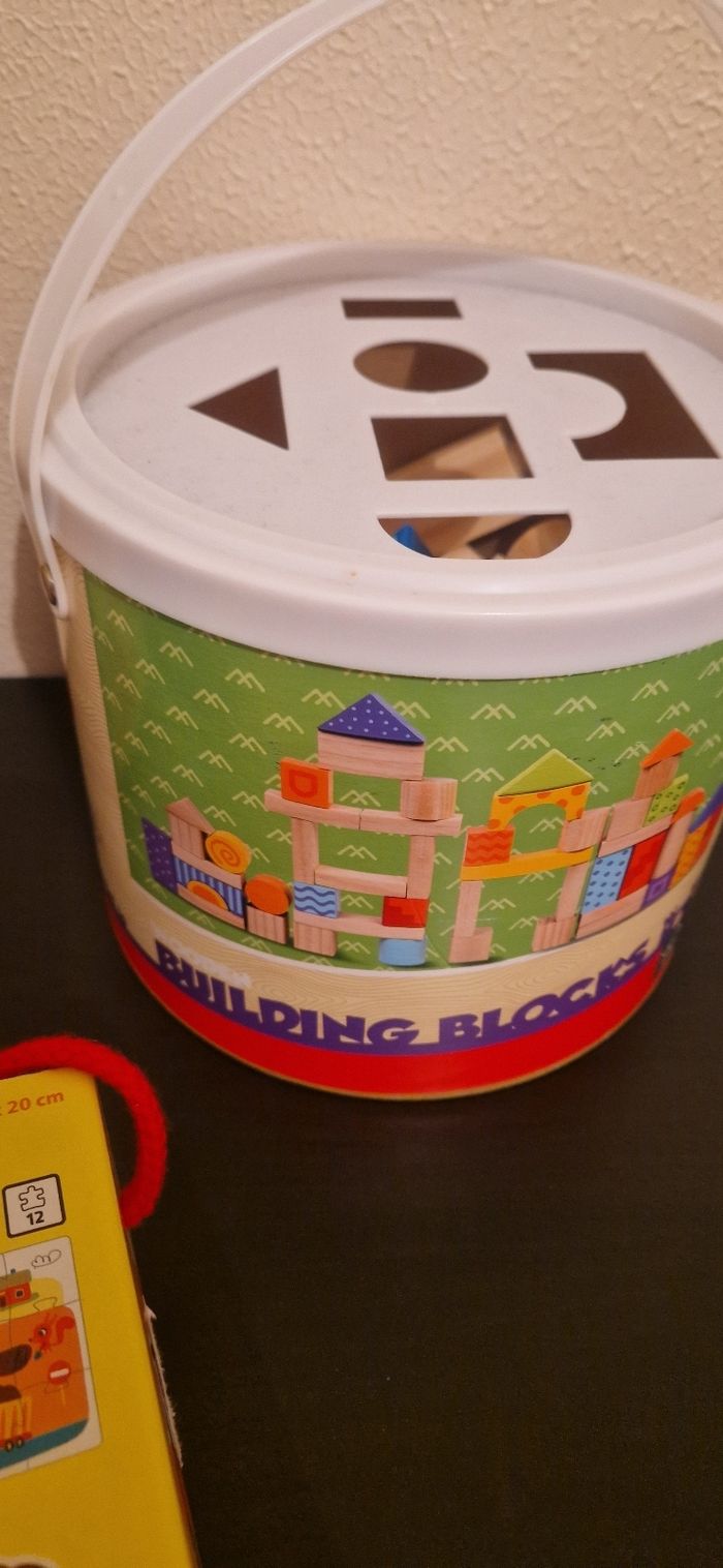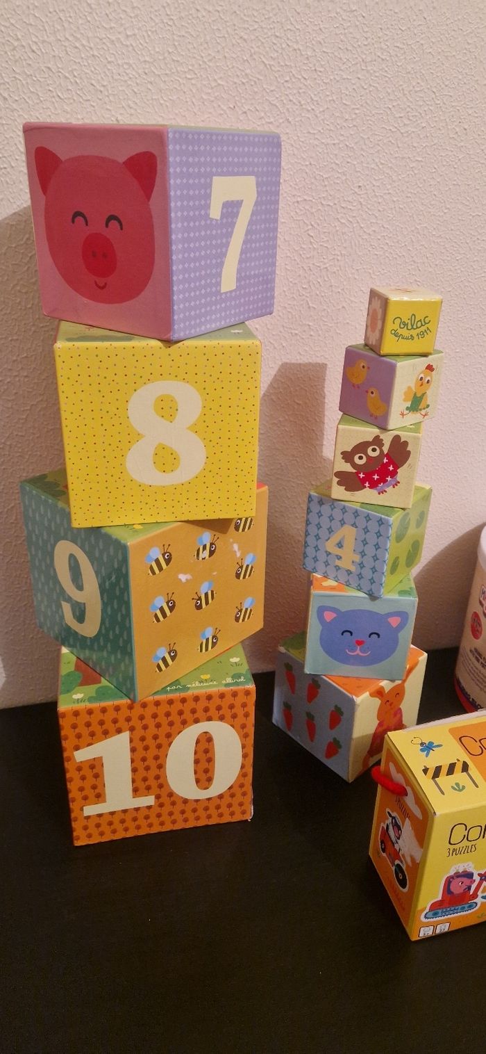 Lot jouets Tour empilable à compter Boite block de construction en bois Lot de 3 puzzles construction