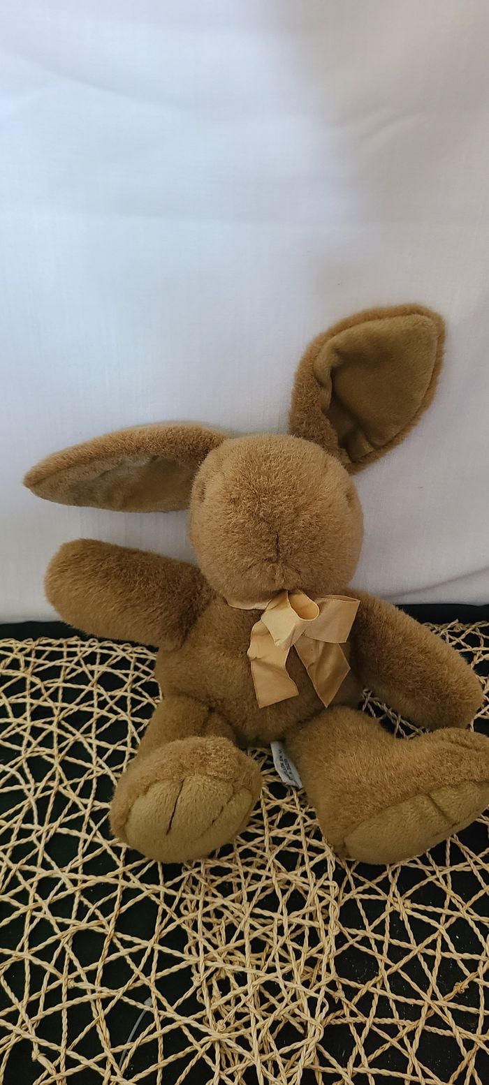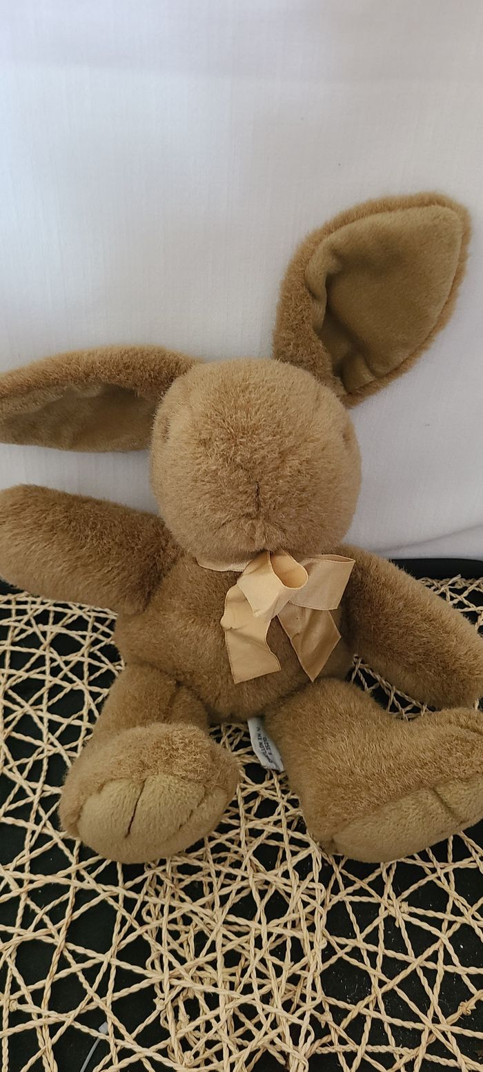 Peluche doudou lapin beige marron clair nœud satiné Ajena - photo numéro 1