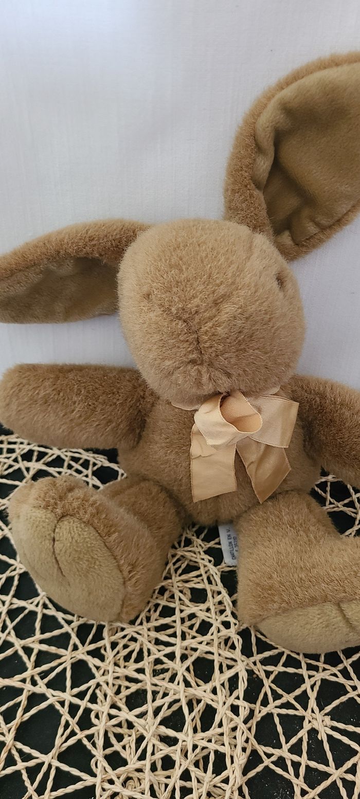 Peluche doudou lapin beige marron clair nœud satiné Ajena - photo numéro 5
