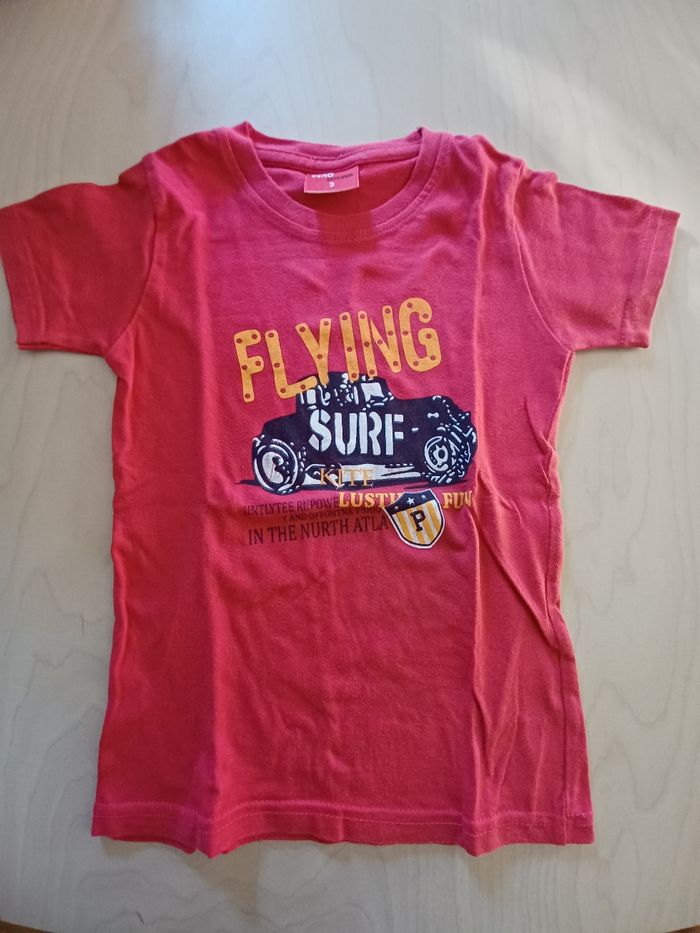 Tee shirt rouge manches courtes avec dessin sur le devant