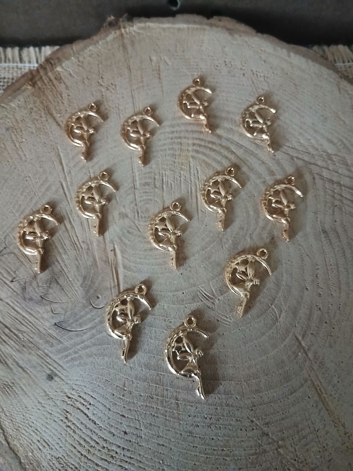 Lot de 12 pendentifs fées lunes doré - photo numéro 1