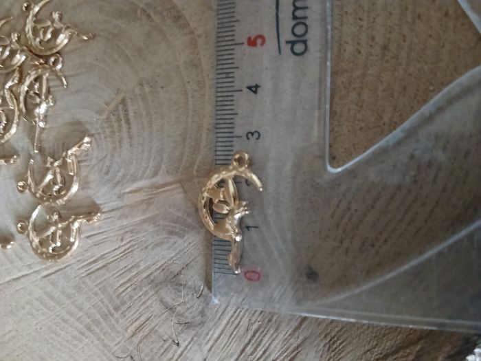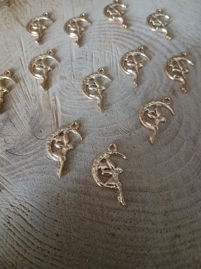 Lot de 12 pendentifs fées lunes doré. D'autres breloques perles pompons boutons biais tissu ect de dispo ds mon dressing n'hésitez pas à jeter un coup d'œil ou à me demander