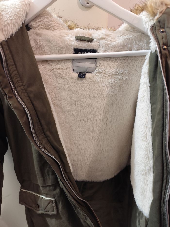 Manteau fille taille 12 ans Couleur kaki Tient bien pour chaud pour l'hiver Manque une pression sur une poche (voir dernière photo)
