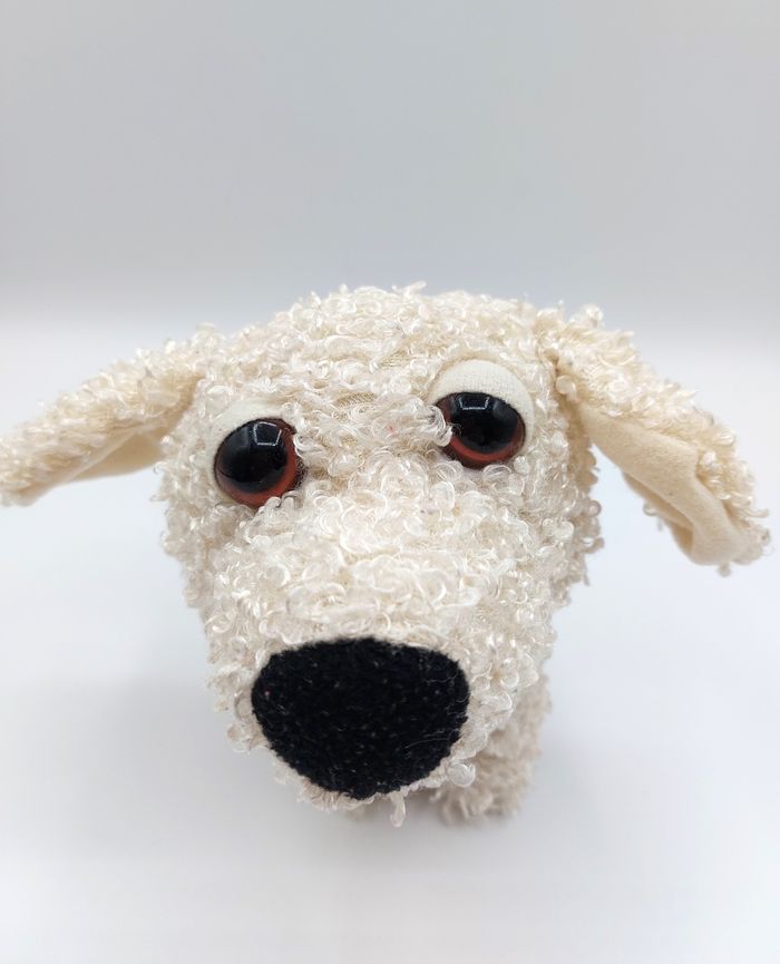 Petite peluche chien blanc qui aboie The dog Artist Quick gros yeux bouclettes 14 cm doudou - photo numéro 1