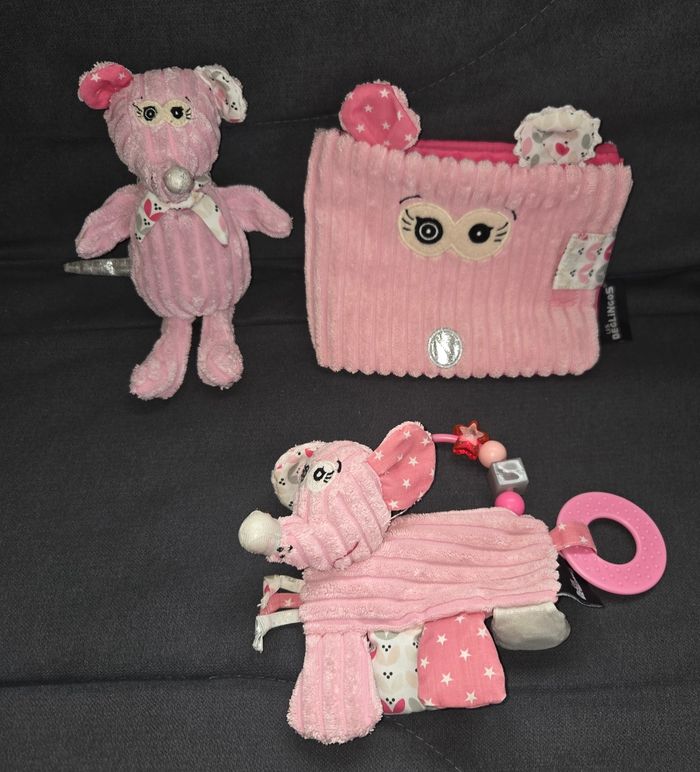 Ensemble souris Coquelicos rose- Album photo - Peluche - Hochet - Deglingos