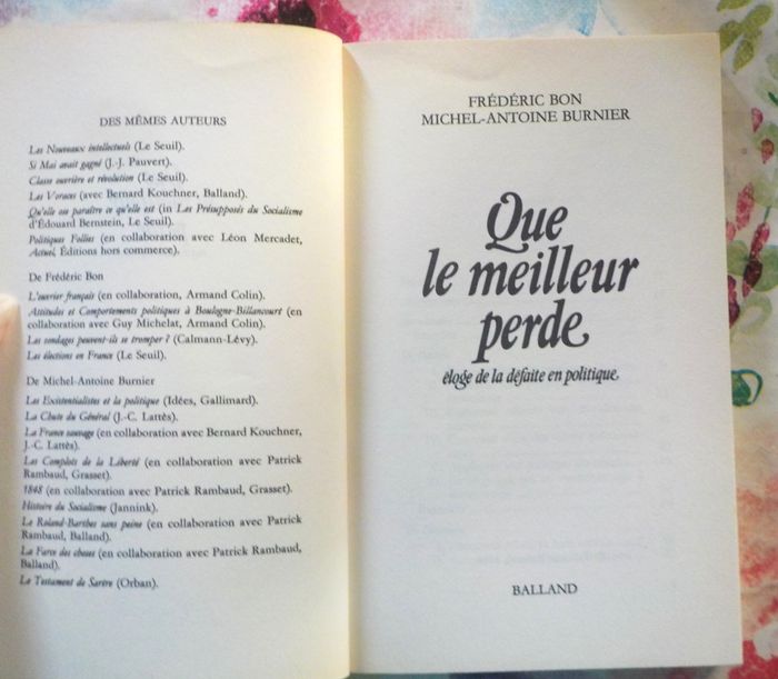 QUE LE MEILLEUR PERDE Eloge de la défaite en politique par Frédéric BON et Michel-Antoine BURNIER Ed. Balland Bon état Résumé en photo n°2