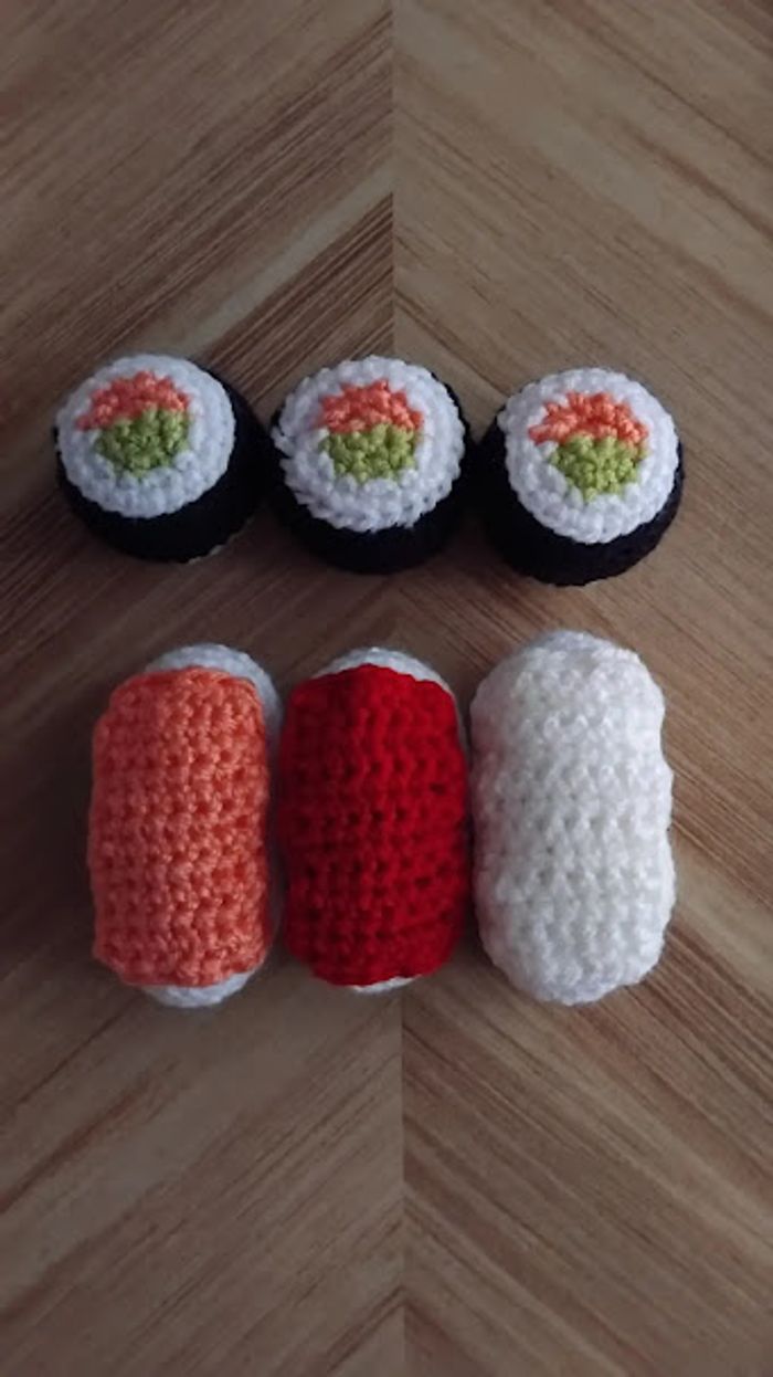 lot de dinette asiatique 3 sushis, et 3 makis. 🎄 Les commandes de Noël sont ouvertes ! sur ma boutique www.crochetstyle.fr*** (tapez le liens sur internet sinon celui-ci ne fonctionne pas)**** ✨ Commandez dès maintenant pour recevoir votre création à temps pour Noël 🎅 🤶 #noël