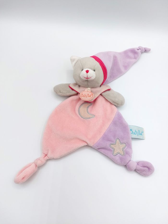 Doudou plat chat rose violet luminescent BABY NAT BN0138 lune étoile - photo numéro 1