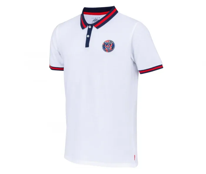 Polo Paris Saint-Germain, coloris Blanc. Produit sous licence officielle. 100 % coton pour 100 % de douceur. En savoir plus : - Col type polo avec patte de boutonnage 2 boutons - Ecusson du club parisien thermocollé sur la poitrine à gauche - Liseré contrasté style Hechter au niveau du col et du bas des manches - Etiquette aux couleurs du club cousue au niveau de la taille - Bande contrastée dans l'encolure