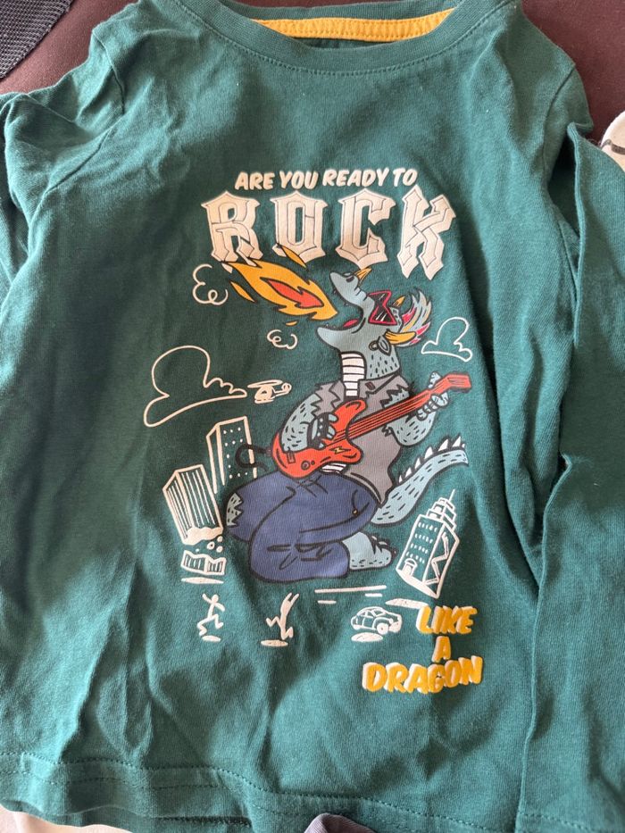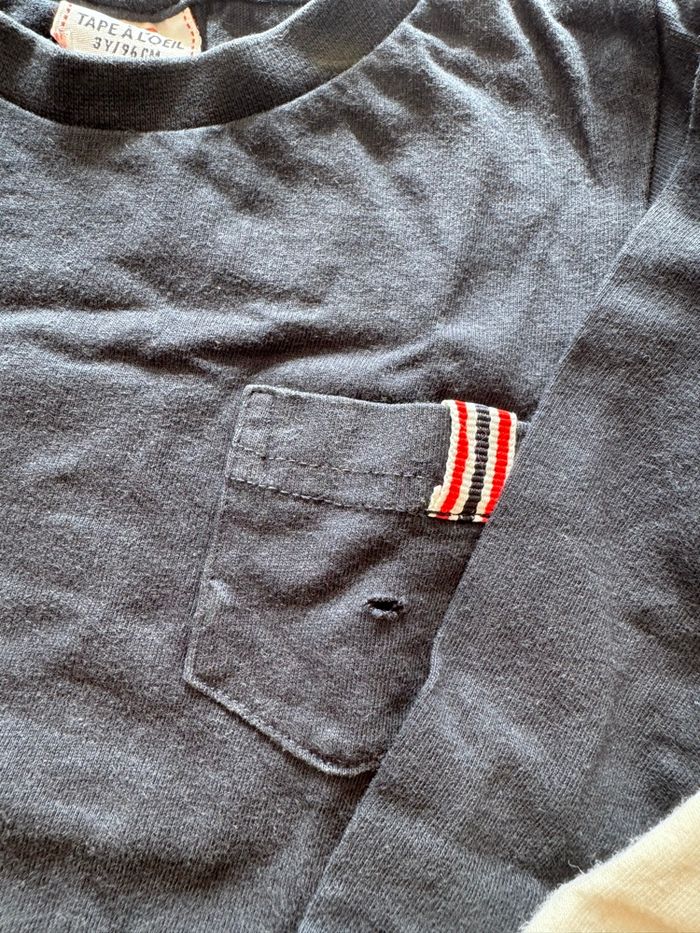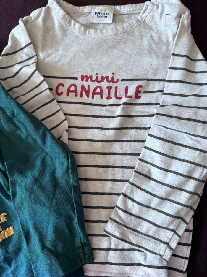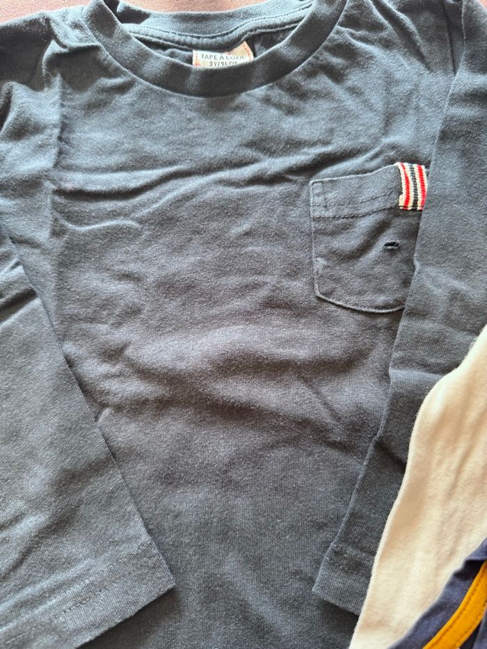 T-shirts manches longues en bon et très bon état (2 petits trous sur le bleu marine Tape à l’œil et un mini tache sur le bleu Okaidi avec les dinosaures) Jean avec taille réglable J’ai d’autres lots dans mon dressing