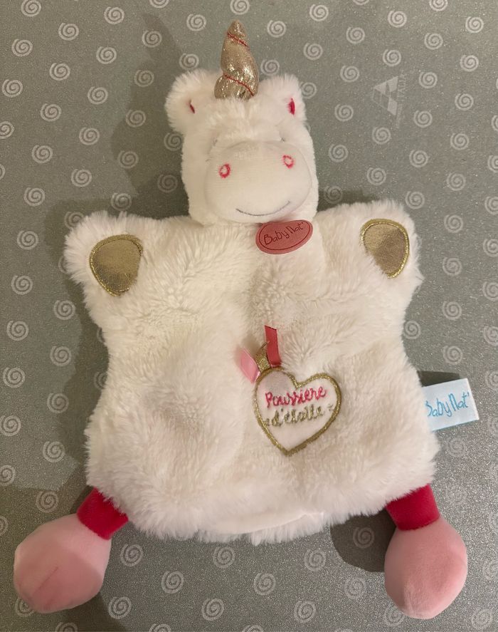 - 1 doudou licorne marionnette Babynat