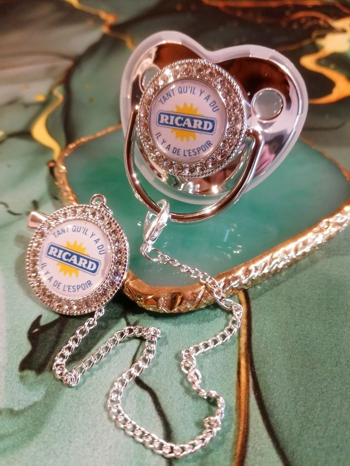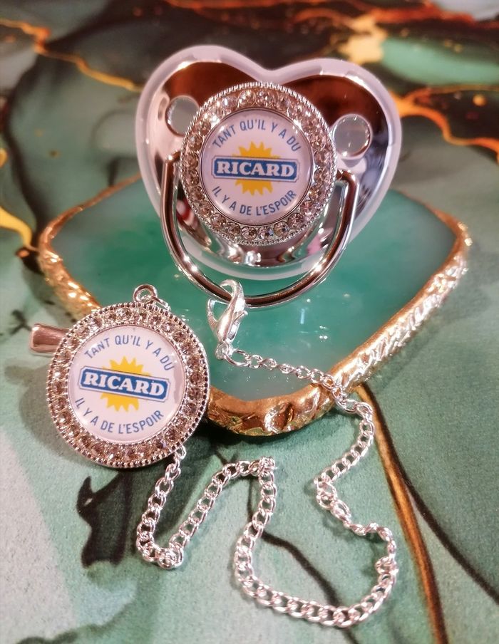 Sucette, tétine avec attache ricard argenté - photo numéro 1