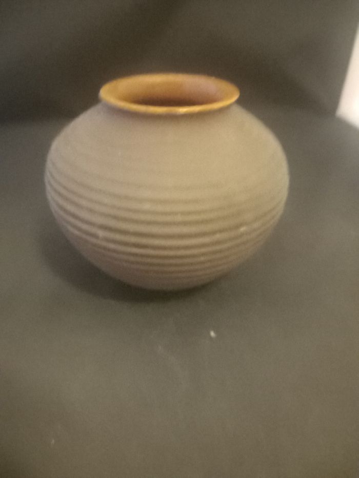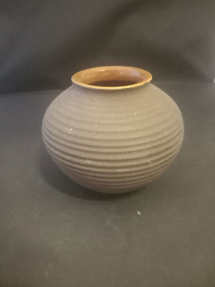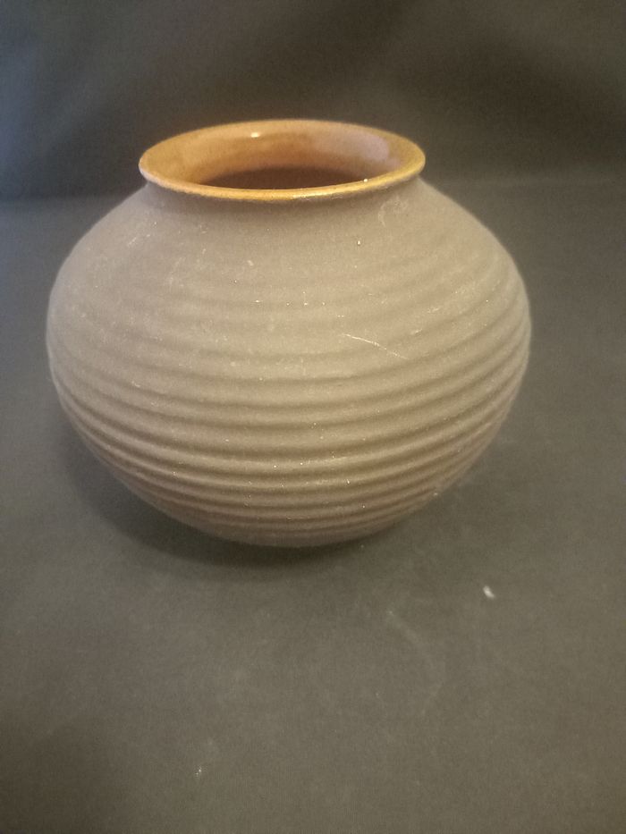 Petit vase Motifs rayures Matière céramique Couleurs marron Estampillée Karlsruhe 5100 En très bon état Dimensions approximative 10cm de haut : 12cm au plus large