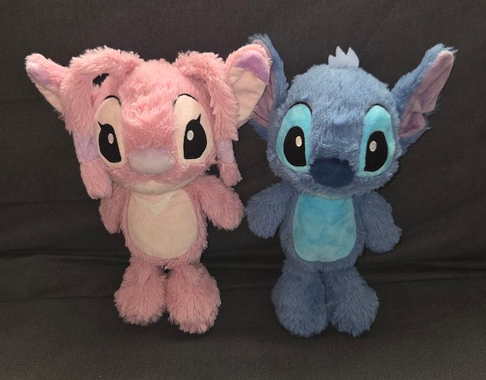 Lot de 2 peluches Lilo & Stitch 1 Peluche Angel en velours de couleur rose 2 tons et qui mesure 30 cm env. 1 Peluche Stitch en velours de couleur bleu 2 tons et qui mesure 28 cm env.