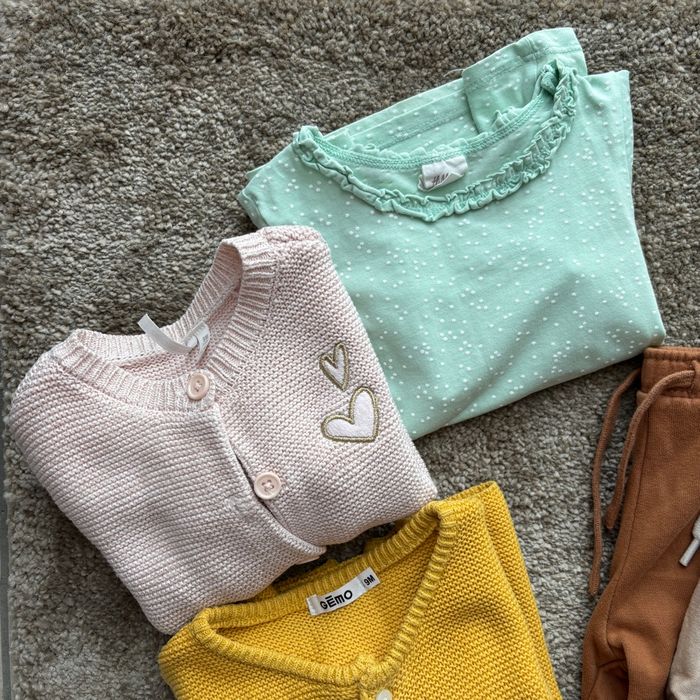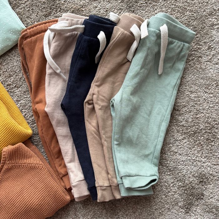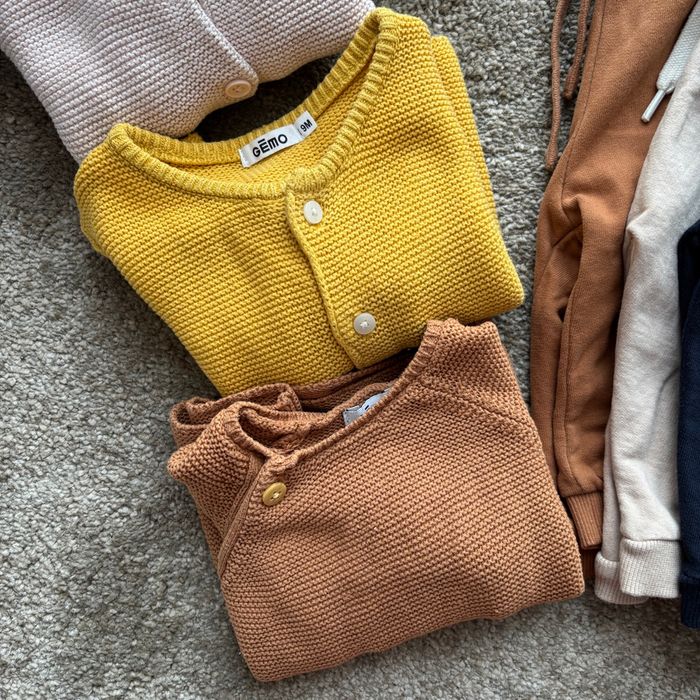 Bonjour je vends un lot de vêtements en 9 mois. Il y a 5 pantalons, 1 tee-shirts manches courtes et 3 gilets.