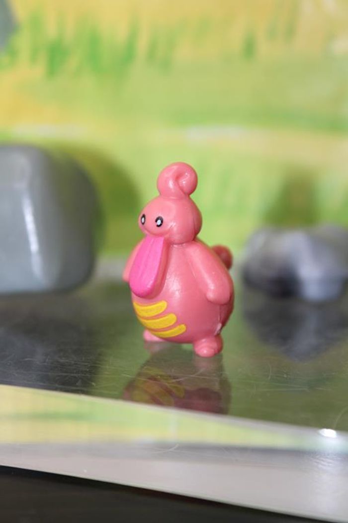 Figurine représentant Excelangue un pokemon de 3 ème génération du monde de Hoenn Excelangue est un Pokémon bipède avec un corps rose, rond et une grande queue. Il a des lignes en forme de plaques sur son ventre et un anneau sur ses genoux. Il a une griffe sur chaque main et pied et possède une longue langue. Taille environ 2/3 cm Marque : PK china En très bon état Réponds avec plaisir aux demandes d'informations complémentairre Réponse rapide envoi soigné dans les meilleurs délais