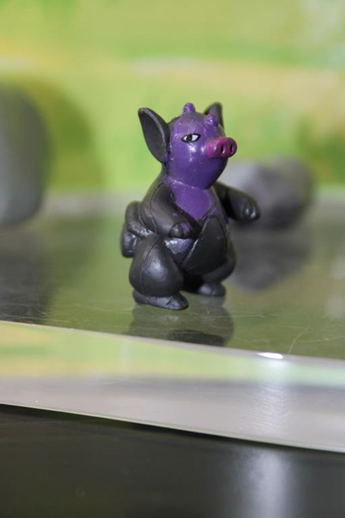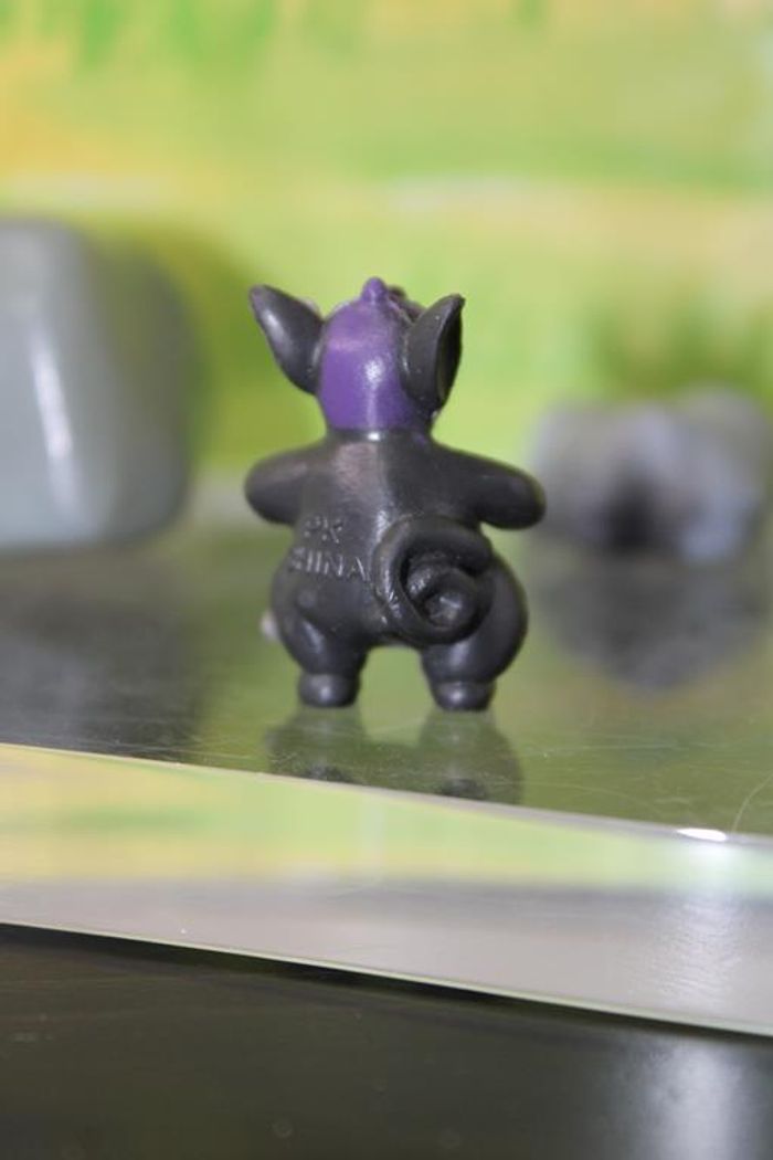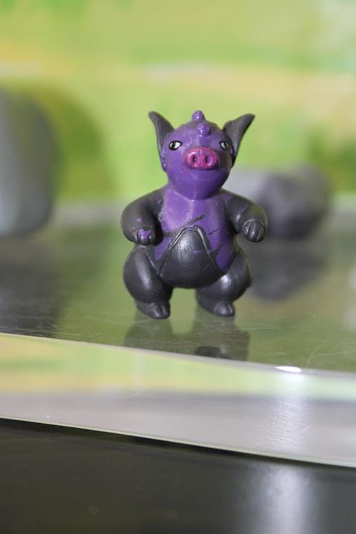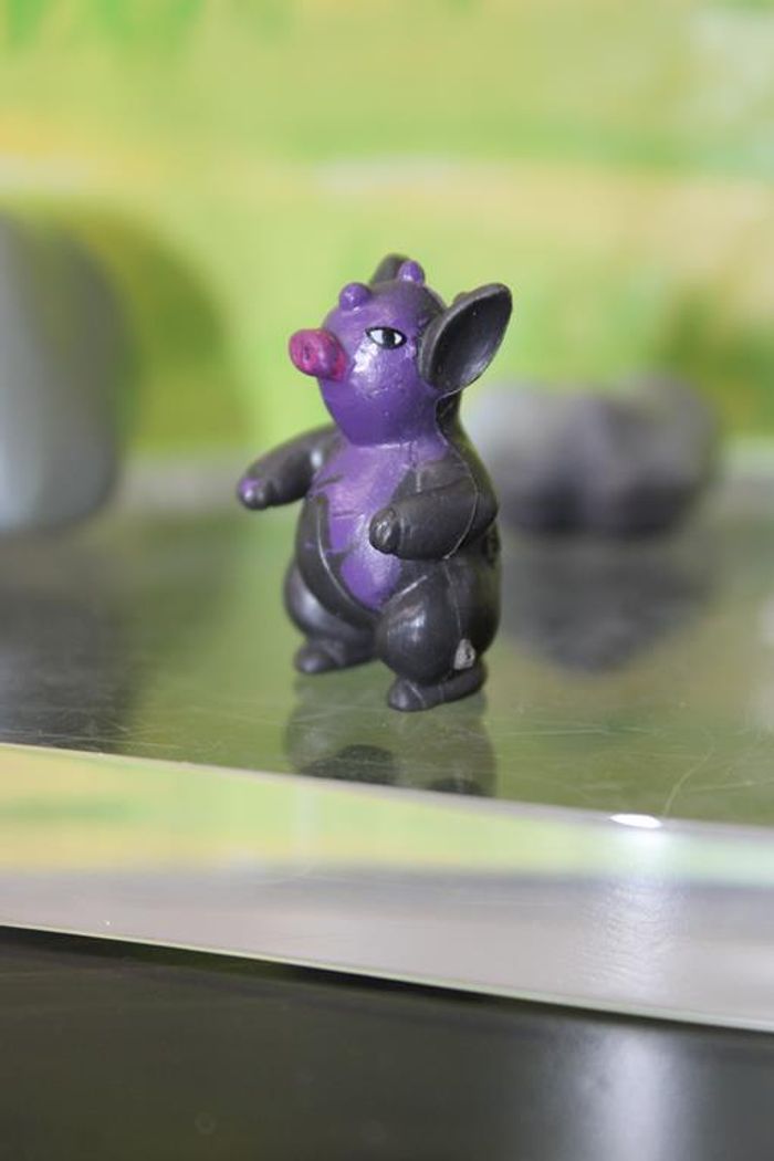 Figurine représentant Groret un pokemon de 3 ème génération du monde de Hoenn Groret est un Pokémon bipède qui ressemble à un cochon. Il a de grandes oreilles, un groin rose et des yeux ovales. Le haut de son corps est violet alors que le bas de son corps est noir. Ses oreilles et ses bras sont également noirs, et ses mains et ses pieds sont violets. Sa queue est rose et entortillée. Il y a trois perles noires et brillantes sur son corps : deux petites sur sa tête, et une autre, plus grande, mais plus plate, sur son ventre, où les parties noires et violettes se rencontrent. Taille environ 2/3 cm Marque : PK china En très bon état Réponds avec plaisir aux demandes d'informations complémentairre Réponse rapide envoi soigné dans les meilleurs délais