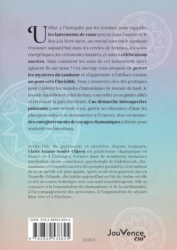 Un voyage inspirant au cœur des mondes chamaniques et une invitation à retrouver son propre rythme. Utilisé à l’Antiquité par les femmes pour rappeler les battements de cœur perçus dans l’utérus et le lien à la Terre mère, on entend souvent le tambour résonner aujourd’hui dans les cercles de femmes, les soins énergétiques, les cérémonies lunaires, et autres célébrations sacrées. Mais comment les sons de cet instrument sacré agissent-ils sur nous ? Cet ouvrage vous propose de percer les mystères du tambour et d’apprendre à l’utiliser comme un pont vers l’invisible. Vous y trouverez des clés pratiques pour explorer les mondes chamaniques (le monde du haut, le monde du milieu et celui du bas), vous relier à vos guides alliés et retrouver la paix intérieure. Une démarche introspective puissante pour revenir à soi, guérir ses blessures d’âme les plus profondes et se reconnecter à l’Univers. Avec en bonus : des enregistrements de voyages chamaniques à thème pour soutenir vos intentions.