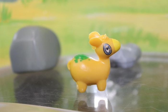 Figurine représentant Chamallot un pokemon de 3 ème génération du monde de Hoenn Chamallot ressemble à un dromadaire rondouillard et très court sur pattes. Son corps est principalement jaune, plus pâle au niveau du museau et du ventre. Le sommet de sa bosse est vert et ses yeux sont cernés par des anneaux bruns. Taille environ 2/3 cm Marque : PK china En très bon état Réponds avec plaisir aux demandes d'informations complémentairre Réponse rapide envoi soigné dans les meilleurs délais