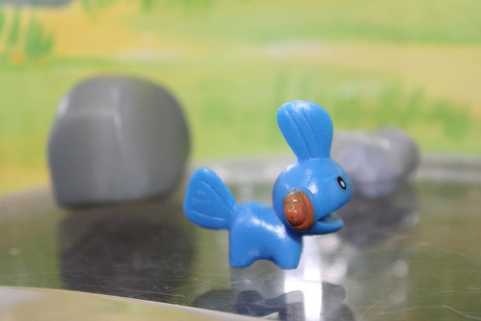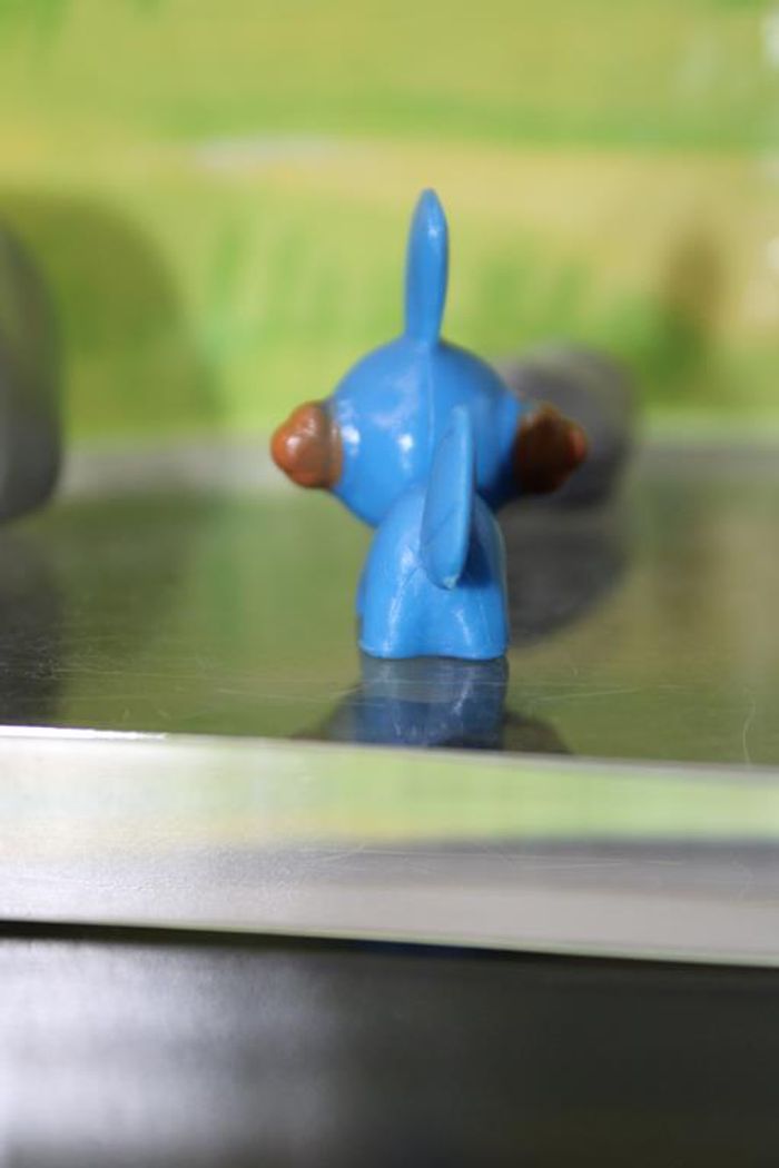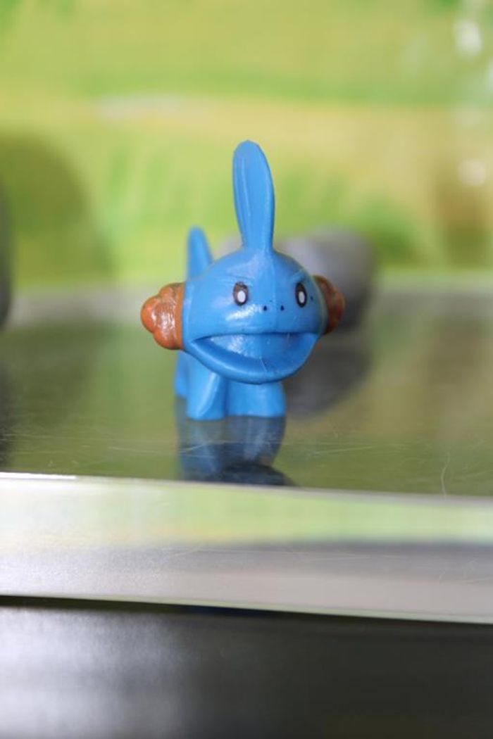 Figurine représentant Gobou un pokemon de 3 ème génération du monde de Hoenn Gobou est un petit Pokémon quadrupède à l'allure amphibienne. Son corps est bleu avec une gorge et un ventre plus clairs. Il a une nageoire sur sa tête sphérique et une autre, plus claire, qui fait office de queue. Ses yeux sont noirs et brillants et les branchies sur ses joues sont orange et en forme de demi-étoile. Taille environ 2/3 cm Marque : PK china En très bon état Réponds avec plaisir aux demandes d'informations complémentairre Réponse rapide envoi soigné dans les meilleurs délais