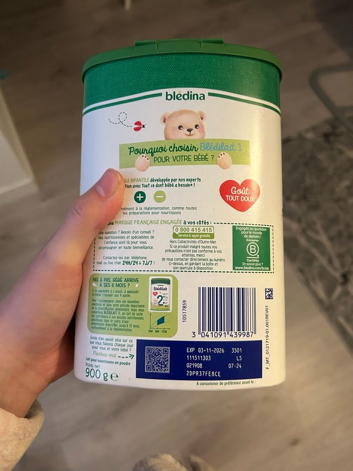 Bledilait 0/6 mois neuf jamais ouvert Date de péremption : 03/11/2026 Envoi rapide
