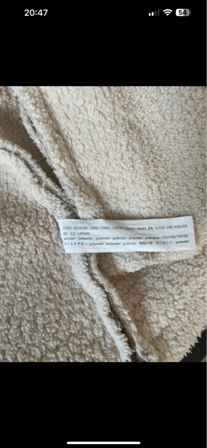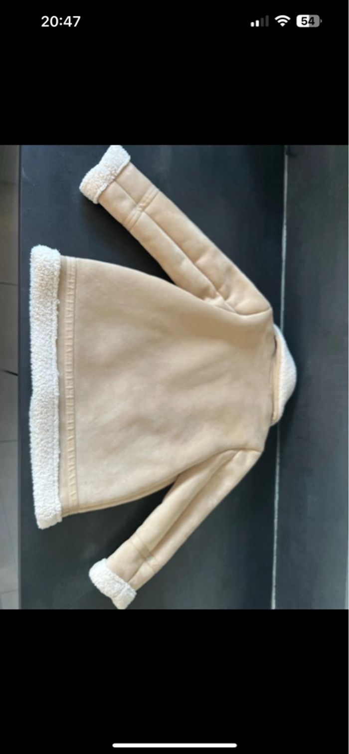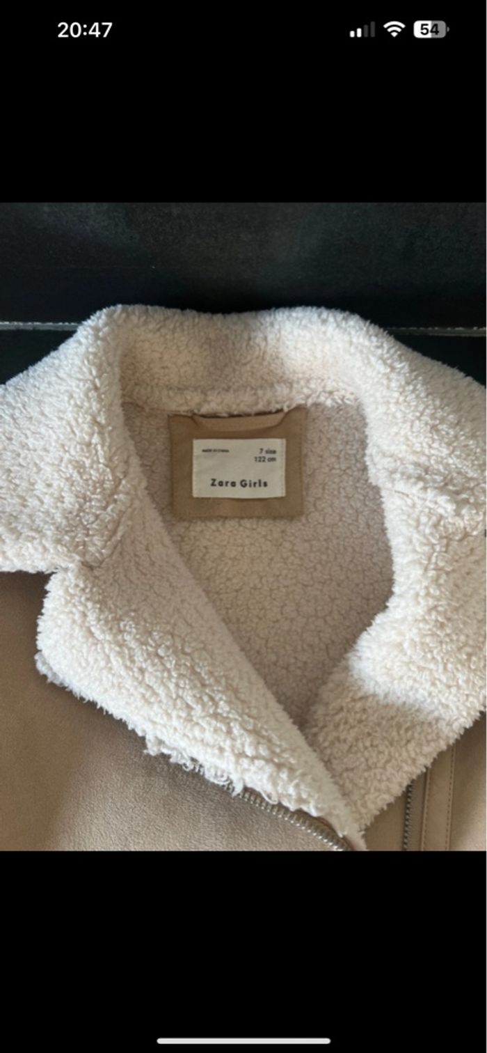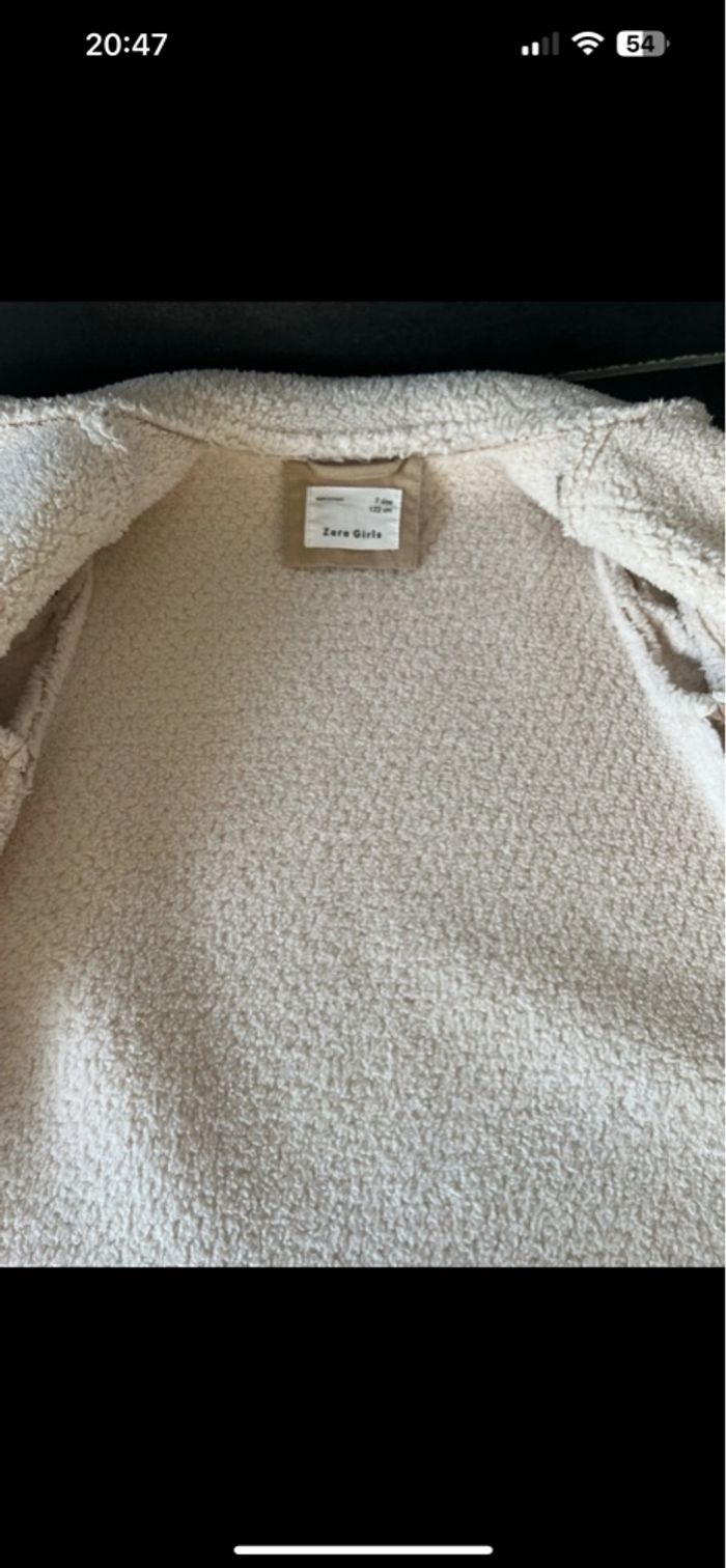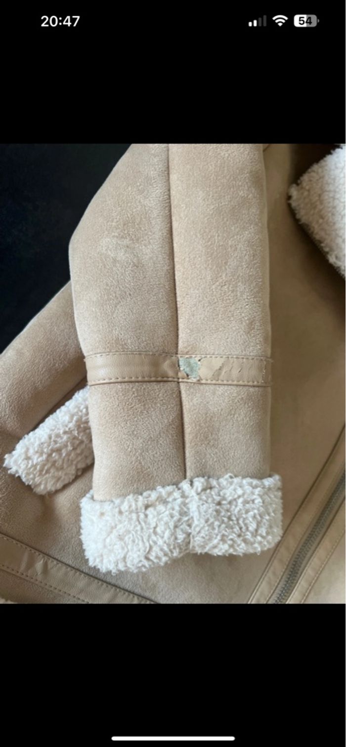 Manteau chaud fourré à l’intérieur Effet daim extérieur Couleur beige et crème Très bon état sauf simili cuir sur une manche qui est abîmé voir photo Taille 7 ans ZARA 🏠 sans animaux et non fumeur