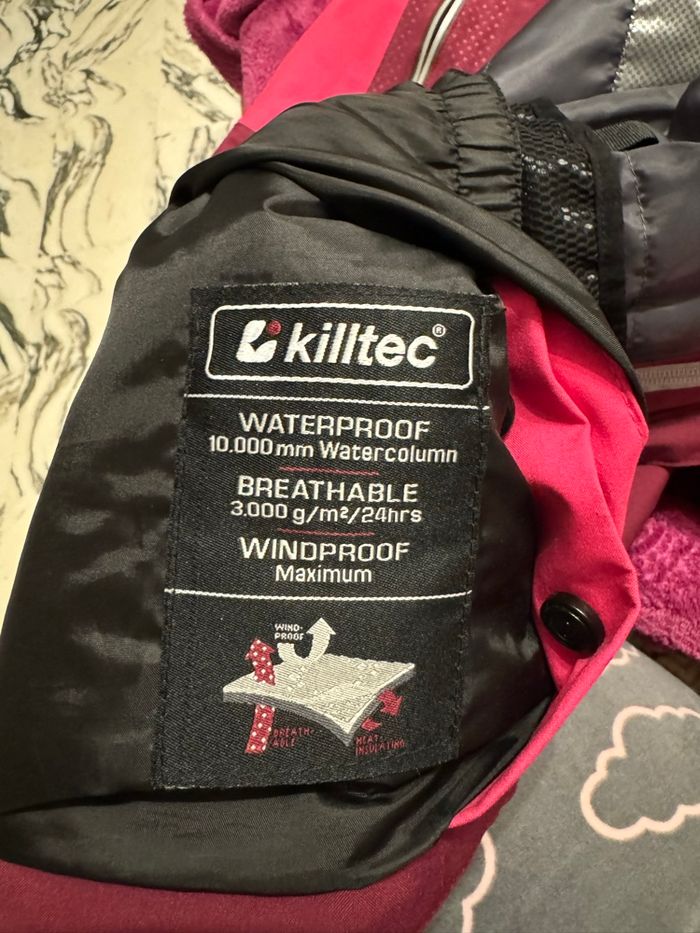 Veste de ski ou snowboard neuve jamais porté En taille L Prix d’achat 139,99 De la marque killtec J’ai mis quiksilver uniquement pour la visibilité Matière : Structure entièrement en polyester mat, 100 % polyester Détails: avec capuche amovible avec pare-neige et poche pour forfait de ski sur la manche respirant, perméabilité à la vapeur d'eau 3 000 g/m²/24 h Colonne d'eau 10 000 mm, coutures soudées, 100 % étanche Ourlet des manches avec fermeture velcro et poignet en lycra avec trou pour le pouce Veste neuve jamais porté car je ne fais pas ces activités Je l’avais prise pour un voyage mais finalement j’ai opté pour une autre veste Dépôt le jour de l’achat Livraison rapide