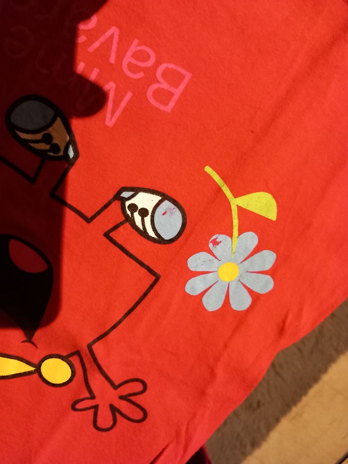 T-shirt manches longues Dessin Mme Bavarde légèrement abîmé (voir photo) De nombreux autres vêtements enfants présents dans ma boutique