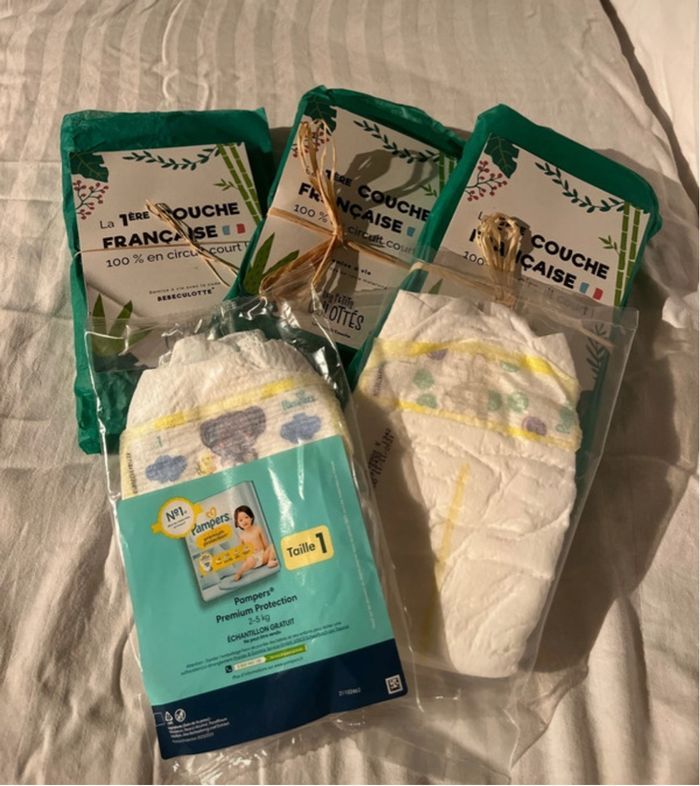 Couches t1 et t2 Les petits culottés : 3 couches t1 et 3 couches t2 Pampers : 2 couches t1