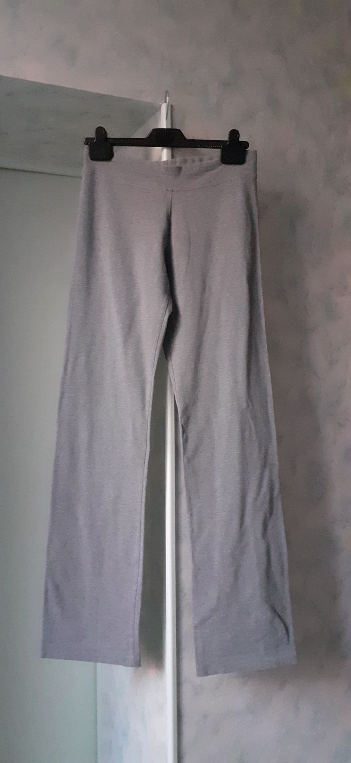 Vends un pantalon jambes larges, en coton jersey gris uni, taille 38-40. Longueur entrejambe : 82 cm. Largeur ceinture à plat : 35 cm. Mais s'étire. A noter : une petite trace blanche sur le devant de la jambe droite (voir photo 2).