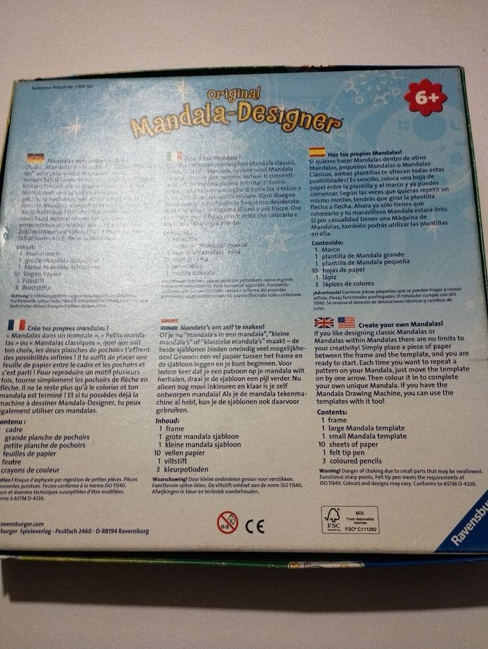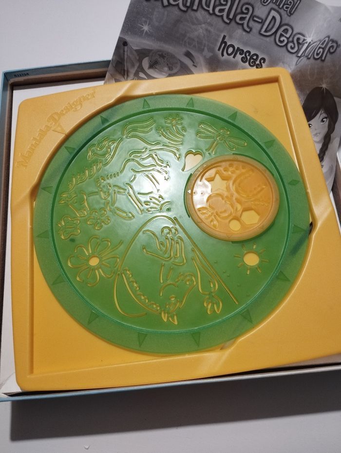 Comprends 1 grand pochoir et 1 petit, avec le support Boite un peu abîmée