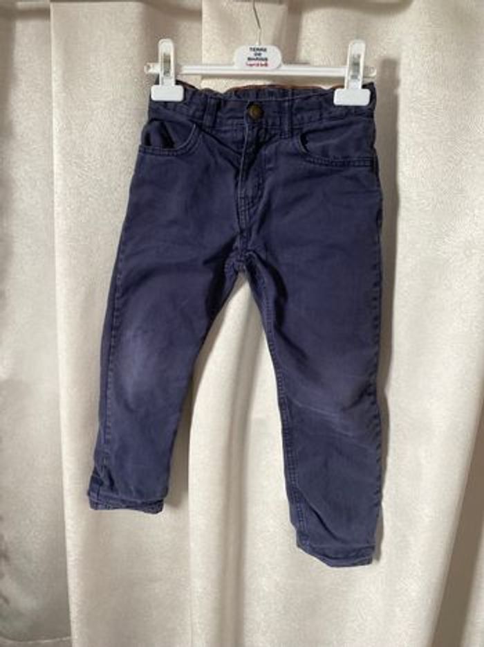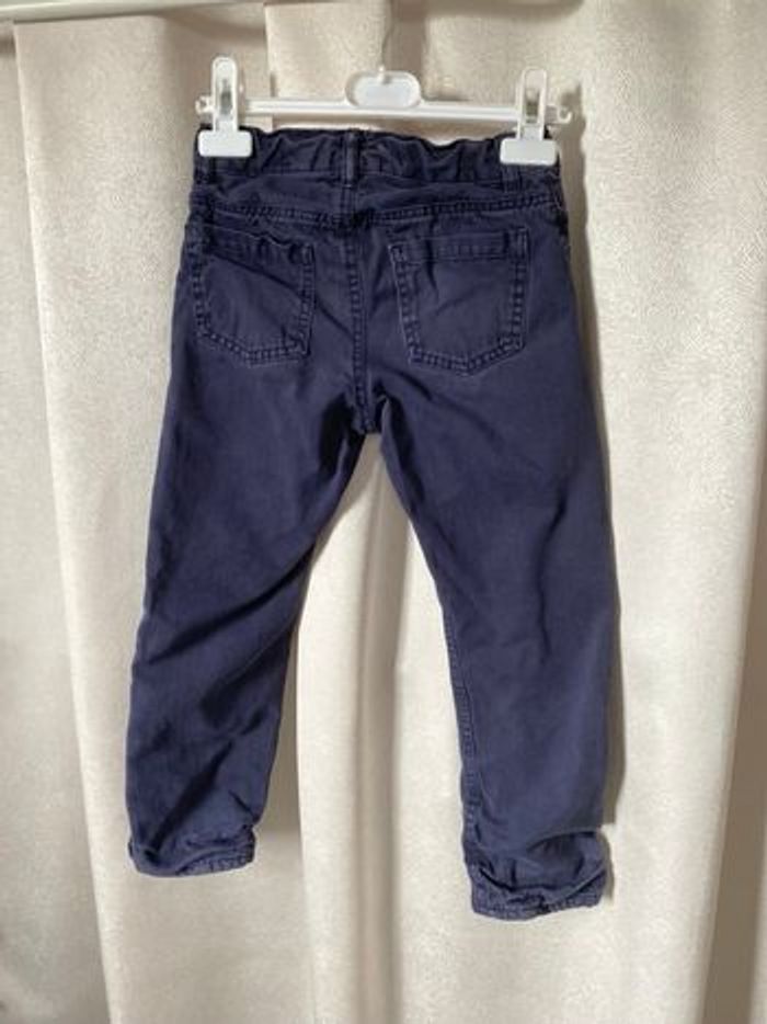 Pantalon bleu marine entièrement doublé gris, super confortable Taille 6-7 ans 122 cm 100% coton Réglable à la ceinture Point d'usure au dessus d'un genou, voir photo H&M