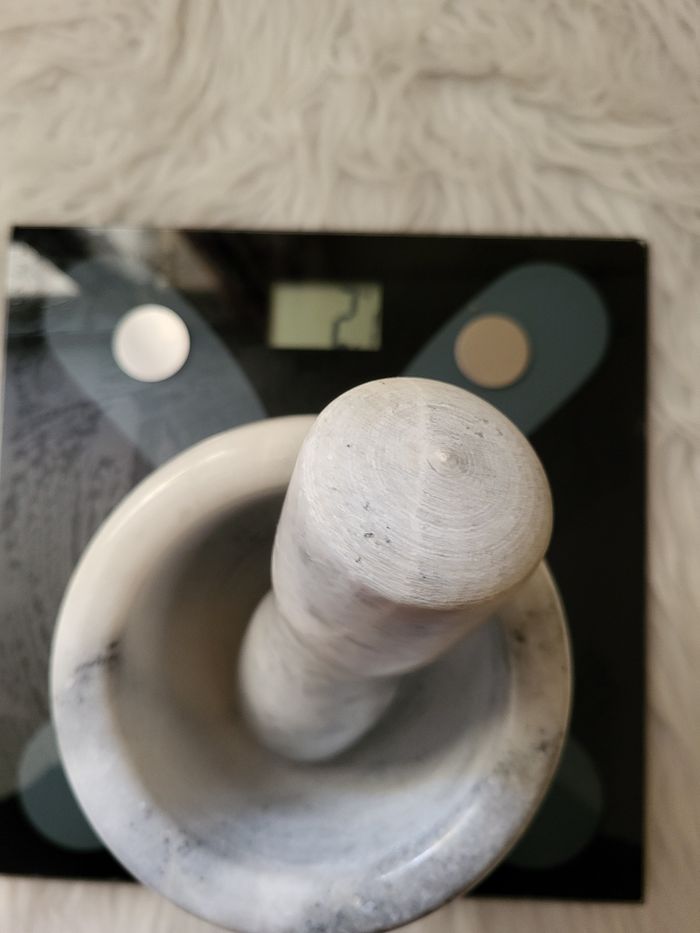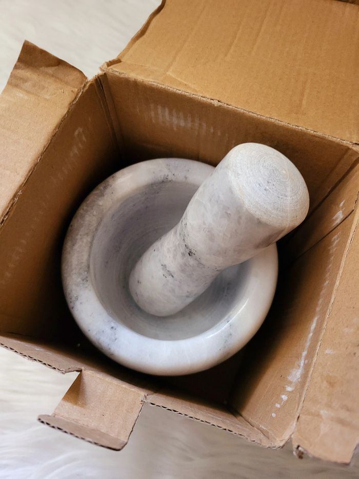 Mortier pilon en GRANIT Profondeur = 8cm Hauteur = 13cm Diamètre = 11,5 cm Poids = 2,1 kg Neuf dans son emballage