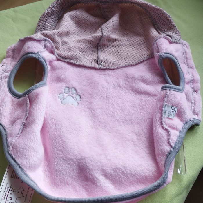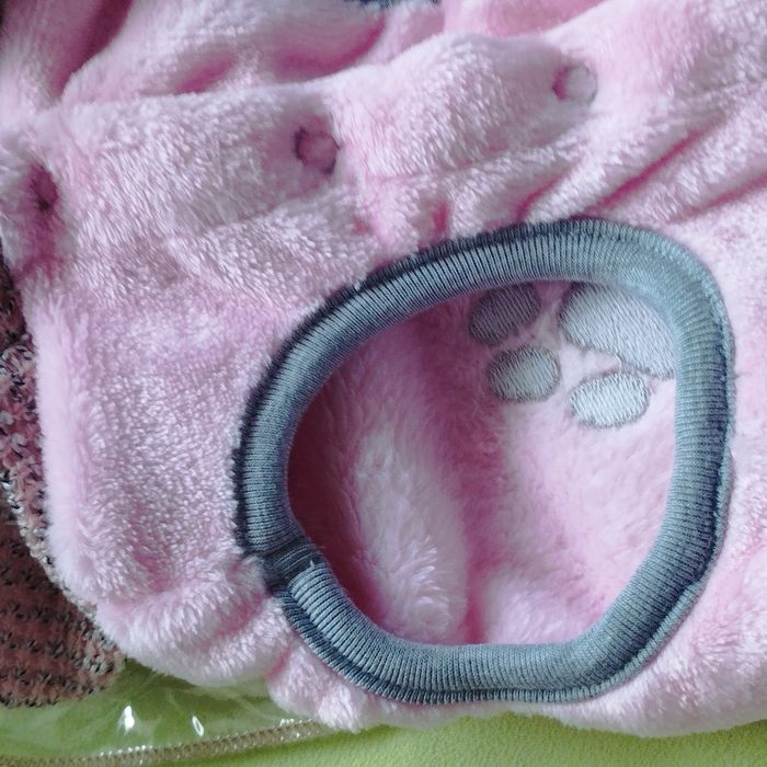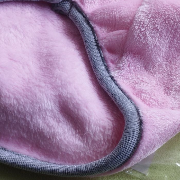 Manteau à capuche fausse fourrure doux et moelleux comme une peluche, Fermeture par 4 boutons pressions. couleurs rose , capuche rose chiné blanc et noir. Selon l'envi la capuche se raccourci par un bouton pression. 34cm de longueur. Neuf jamais porté.