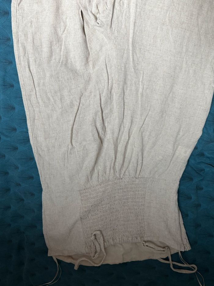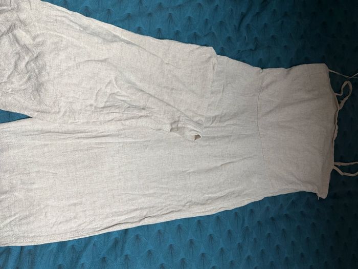 combinaison pantalon matière lin beige