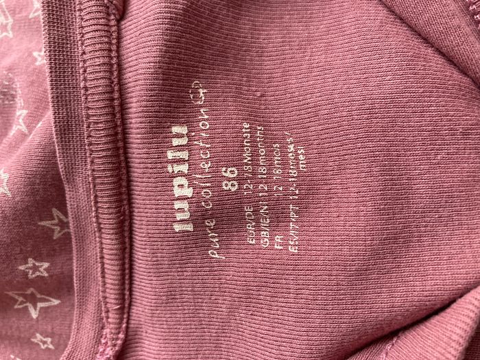 taille 86 cm (FR 12/18 mois) pour moi taille grand 18 mois couleur rose foncé excellent état