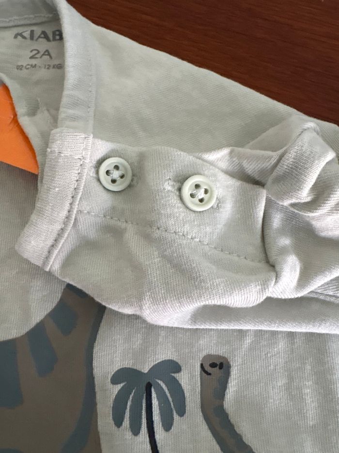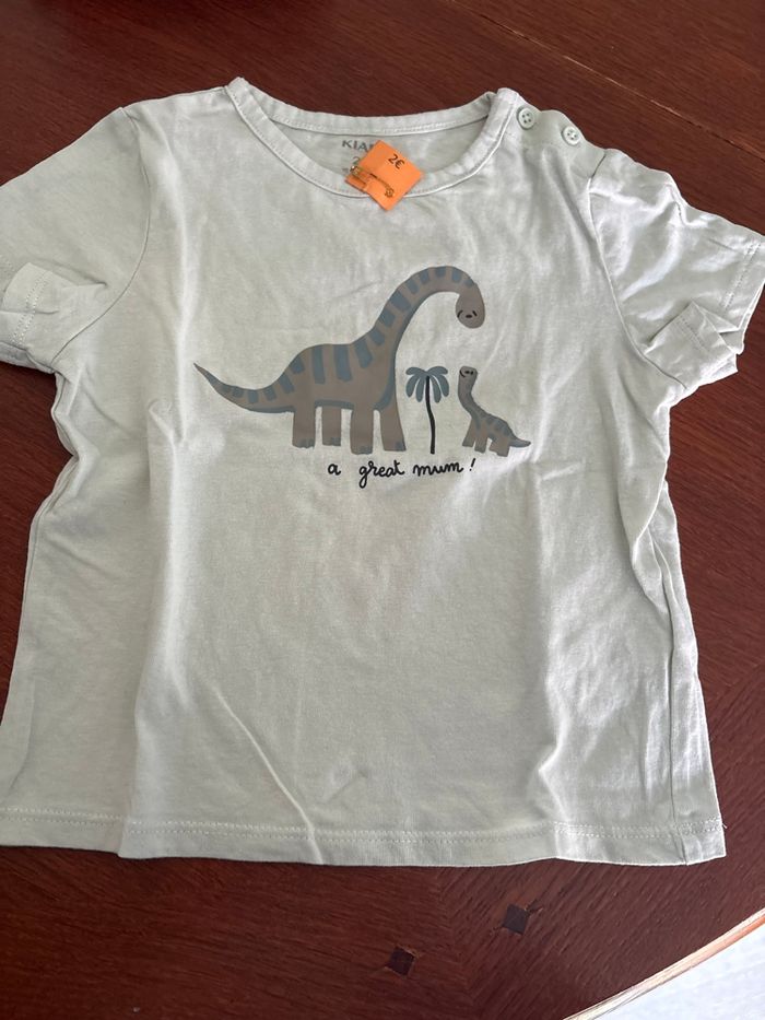 Tee shirt vert sauge imprimé dino Bouton sur l’épaule Kiabi 2A/92cm