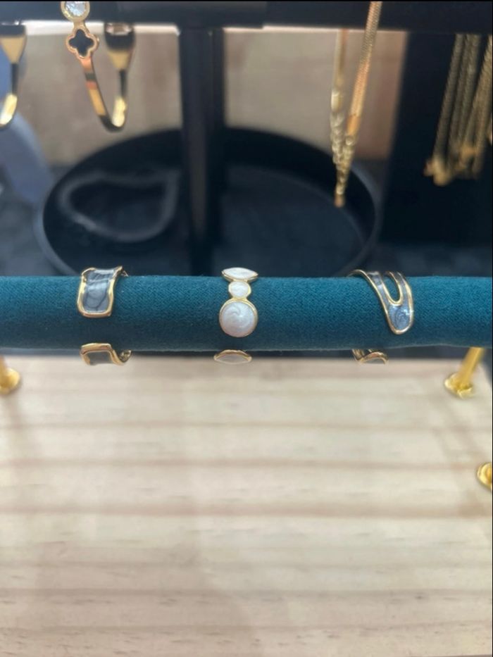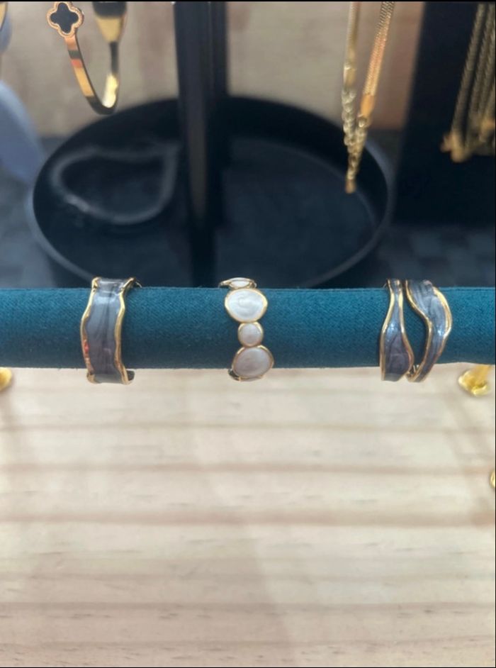 Lot 3 bagues Acier inoxydable Ajustable Couleurs doré,gris ,blanc nacré