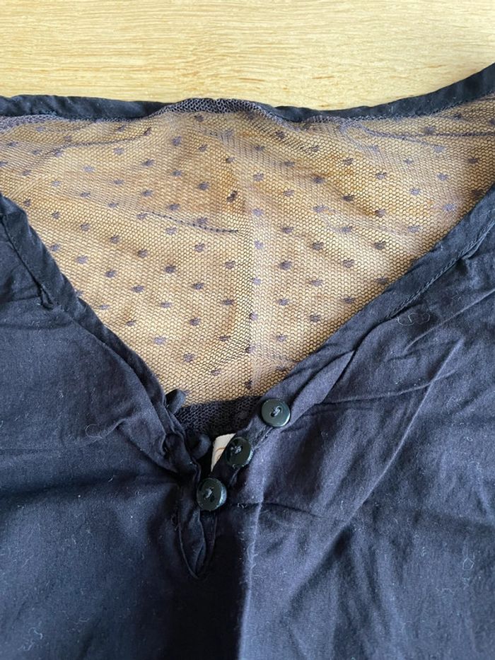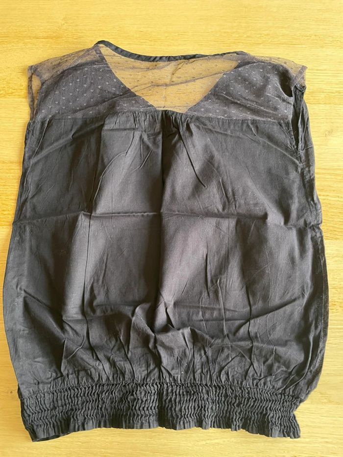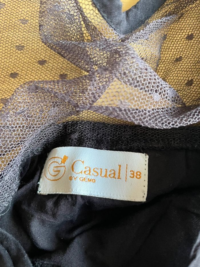T-shirt/blouse noir, avec détail tulle plumetis dans le dos Col V Élastiqué à la taille Marque Casual by Gémo Taille 38 Idéal fêtes fin d’année/Noël