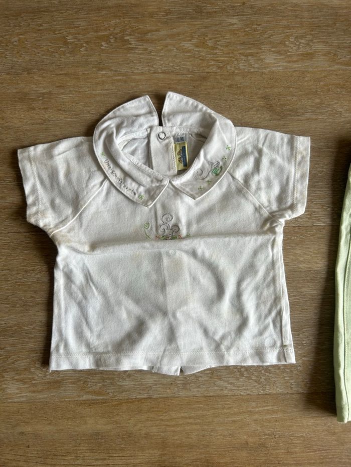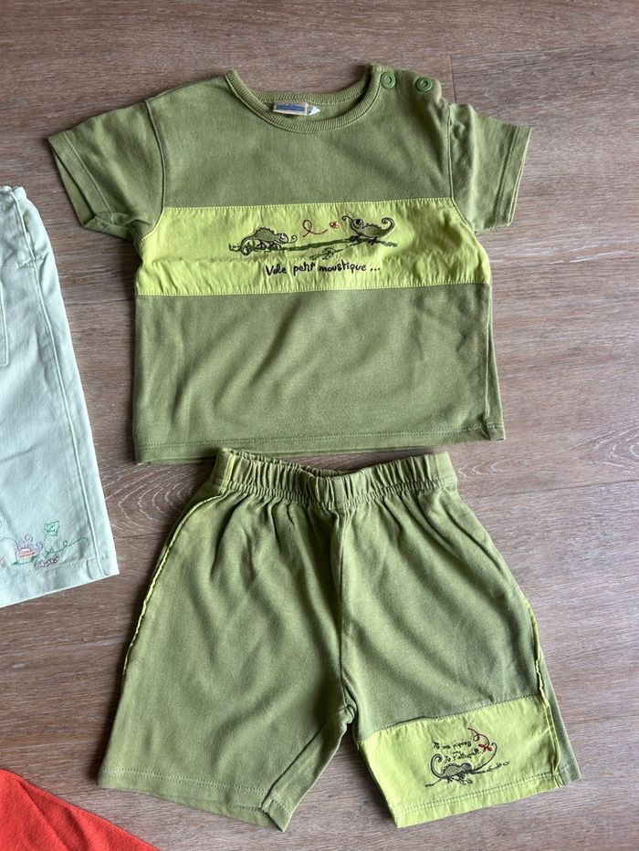 Lot de 5 vêtements garçon taille 9 mois comprenant : - 1 haut blanc col brodé (légère trace) - 1 ensemble t-shirt et 1 short vert kaki - 1 haut à manches longues rouge - 1 salopette courte vert clair brodée Plusieurs pièces idéales pour l’été et la mi-saison Vêtements en coton, doux et confortables. Le haut blanc présente une légère trace, les autres pièces sont en bon état général (voir photos). 🛍️ N’hésitez pas à faire un lot j’ai beaucoup d’articles en ventes. 📦 Envoi ou remise main propre à Limoges.