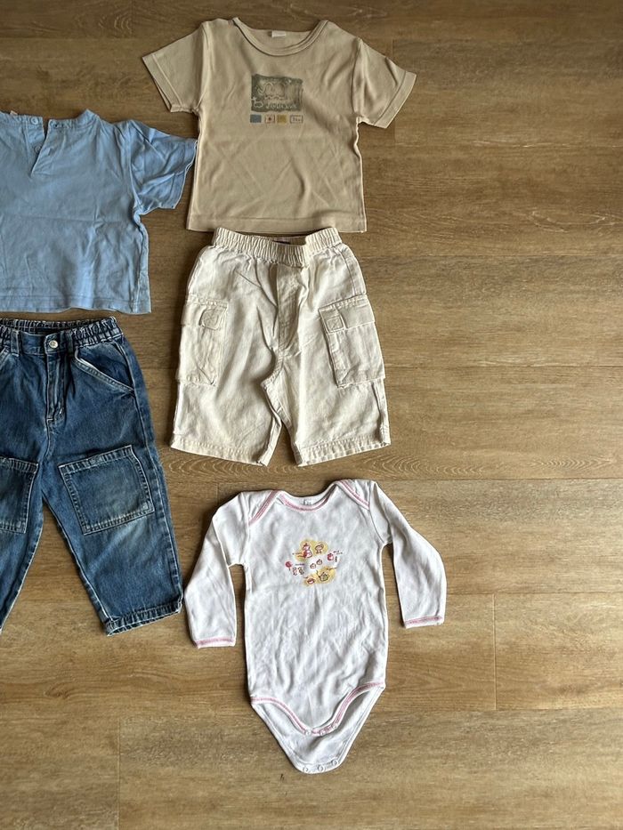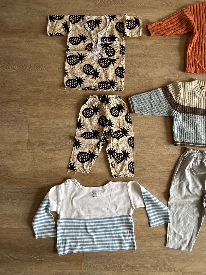 Lot 11 vêtements garçon 2 ans comprenant : - Hauts manches longues (rayé, coton, tricot), t-shirts - Shorts et pantalons (jean, cargo, toile légère) - Ensemble exotique ananas (haut + pantalon) - Pulls laine ou coton (gris rayé, orange, etc.) - Un body manches longues Vêtements pratiques pour toute l’année, de la crèche à la maison. Quelques articles peuvent présenter de légères taches d’usage (voir photos) mais restent en bon état général. 🛍️ N’hésitez pas à faire un lot j’ai beaucoup d’articles en ventes. 📦 Envoi ou remise main propre à Limoges.