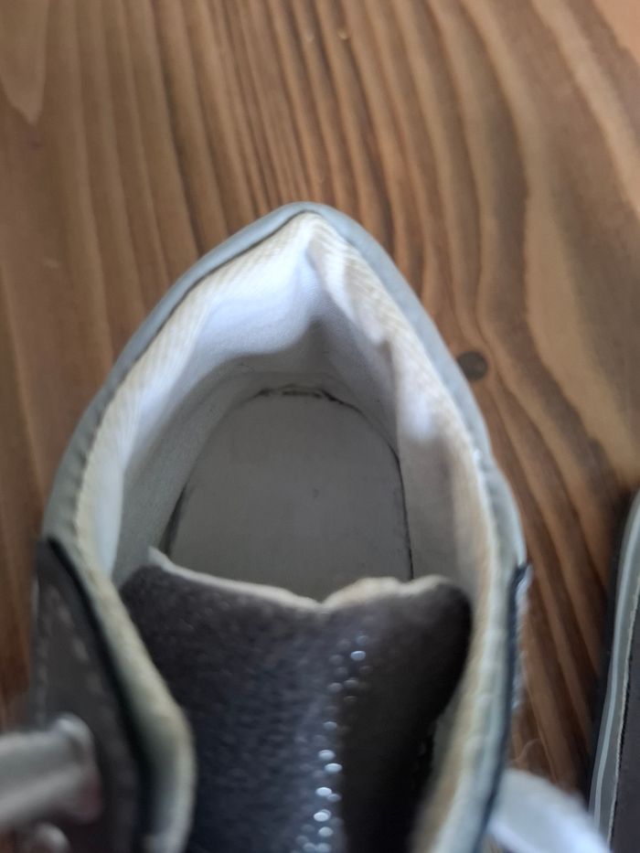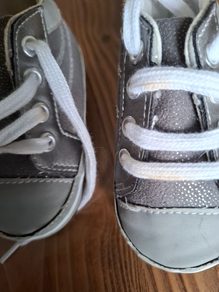 Chaussure taille 20/21 Il y a des tâches au niveau des lacets (photo 3) et a l'intérieur de la chaussure ( photo 4)
