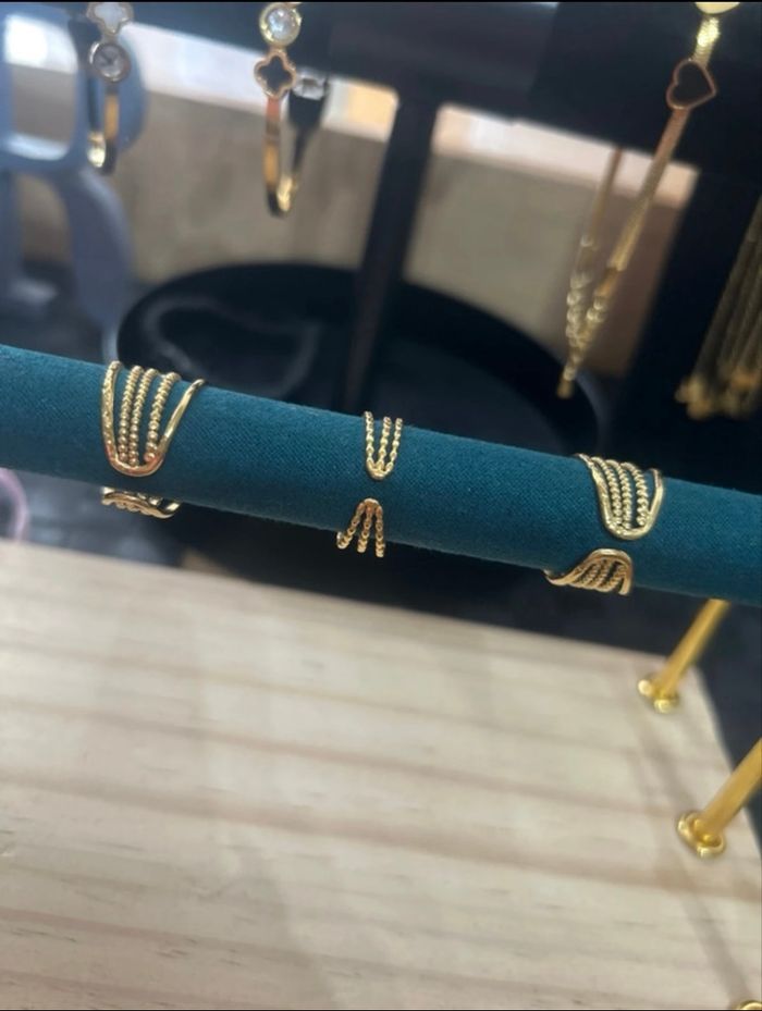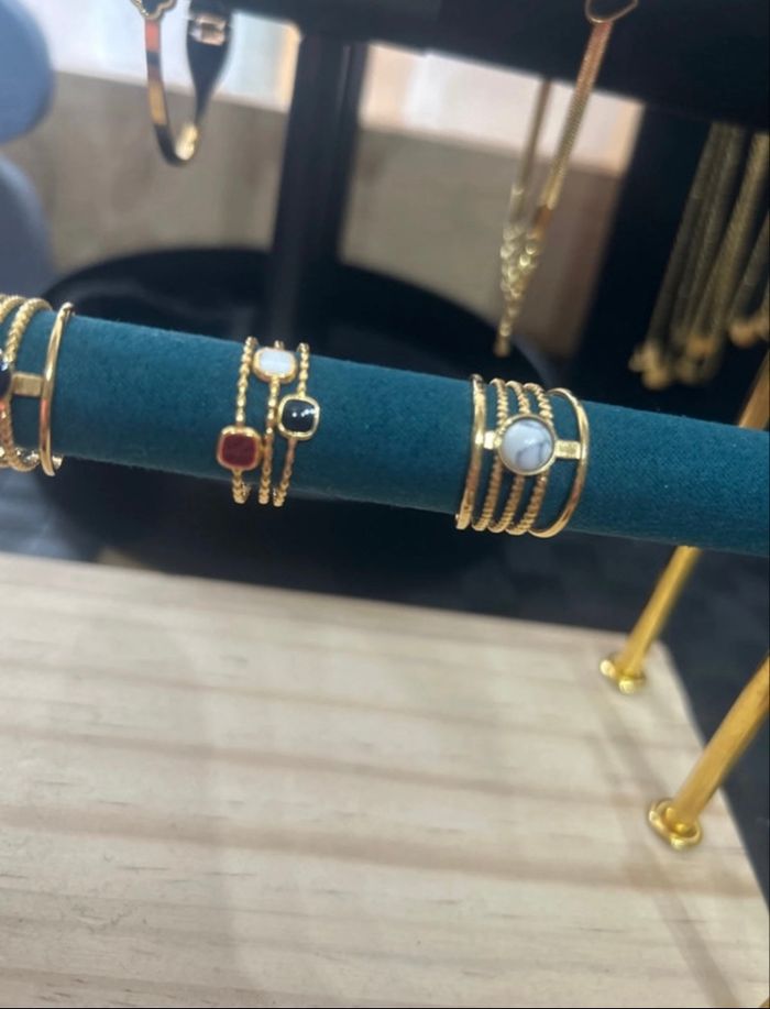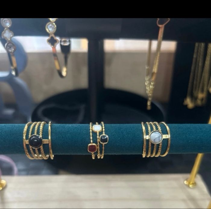 Lot 3 bagues Acier inoxydable Doré avec pierres Bague ajustable