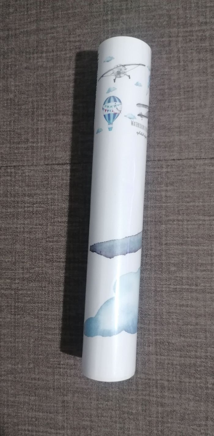 Un rouleau (sous blister). Stickers pour chambre bébé. Environ 1m a l'œil.cest pas noté sur l'emballage. Dessin nuage, ballons, hélicoptère. Rouleau neuf. 3,50€
