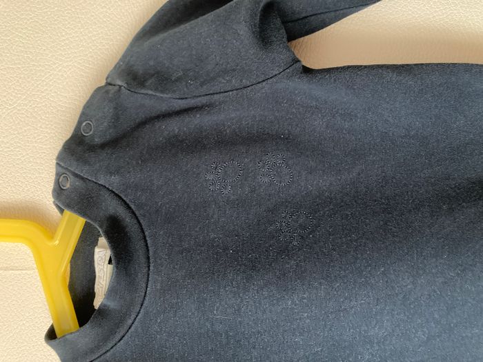 taille 23 mois molleton fin mais bien chaud 3 petites empreintes brodées beaucoup plus joli que sur les photos