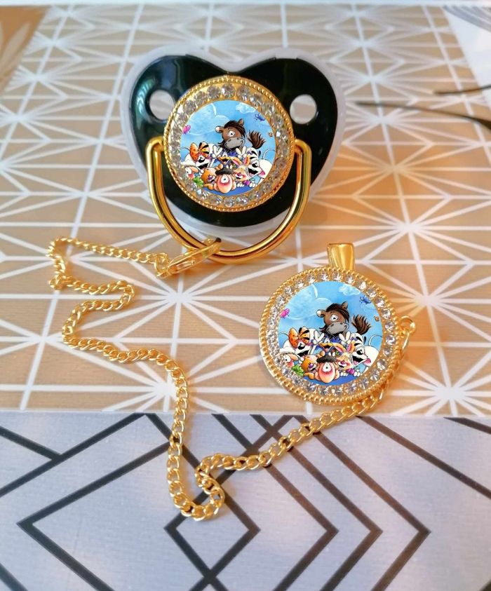 Sucette strass avec attache Couleur noir Protection inclus Sucette 100% Silicone, Sans BPA. Sucette orthodontique, taille unique. Neuf emballé