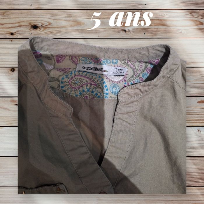 🌿💚 Chemise longue kaki – Tape à l’Œil – Taille 5 ans 🌸