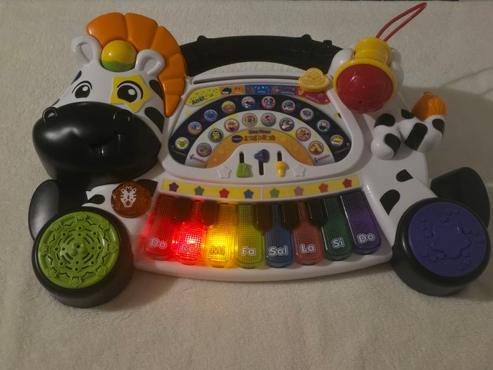 Mon piano Jungle Rock Zèbre de chez Vtech. 4 modes de jeu + micro. Excellent état comme neuf jouet déjà présent chez la nounou ma fille ne joue pas avec. A partir de 18 mois